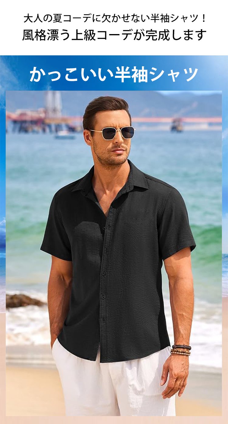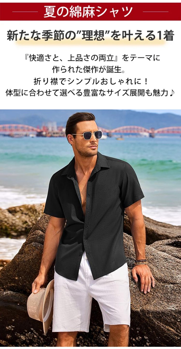 コットンリネン半袖シャツ